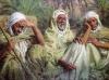 Un jour, une femme sort de sa maison et voit trois vieillards avec de longues barbes blanches, assis devant chez elle. Elle ne les reconnaît pas. Elle leur dit : " Je ne pense pas que je vous connaisse, mais vous devez avoir faim, s'il vous plaît, entrez et je vous donnerai quelque chose à manger ".